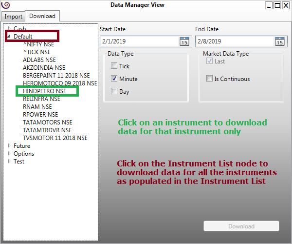 The Download feature allows one to download backfill/historical data at one go. Please follow the below steps to do so.